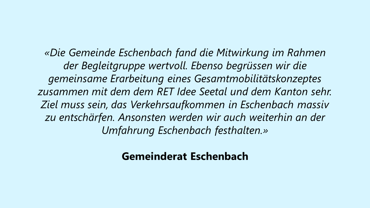 Der Handlungsdruck ist bereits heute spürbar und wird mit der erwarteten Siedlungsentwicklung noch zunehmen. Die Planungssynthese hat deshalb auch kurz- und mittelfristige Massnahmen zur Verbesserung der Verkehrssituation im Seetal geprüft.
